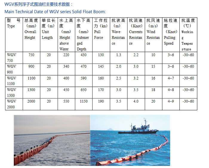 固体浮子浮力储备大,乘波性能好,垂直稳定,滞油能力强;