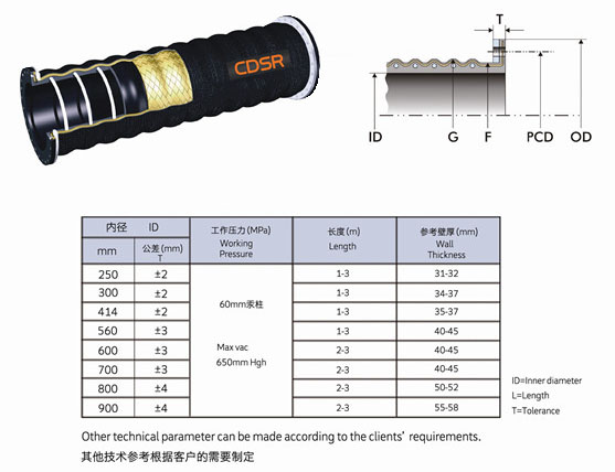 钢法兰吸泥胶管用于与疏浚船配套输送泥沙。厚壁31-58毫米。适宜工作温度为零下20摄氏度到50摄氏度。